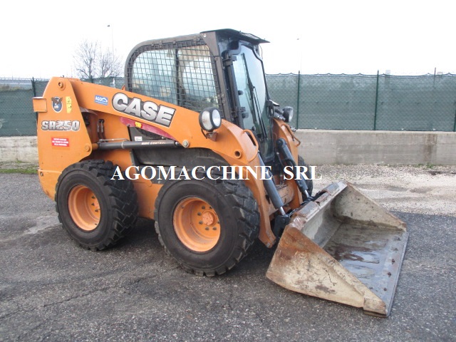 minipala gommata CASE SR250, anno 2015, peso kg. 3.500, buone condizioni, ben gommata, joystick, impianto High Flow, cabina chiusa, aria condizionata, certificato di conformità CE, libretto di circolazione stradale, ulteriori informazioni e prezzo solo telefonicamente tell. 339-7182098 e/o 331-9538806, non rispondiamo alle mail
