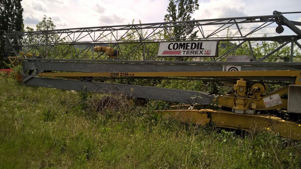 gru automontante con rotazione in basso marca Cattaneo modello CM 73A Sbraccio ml 21.00 con portata di 650 kg in punta La macchina è completa della certificazione CE ed è immediatamente disponibile al carico