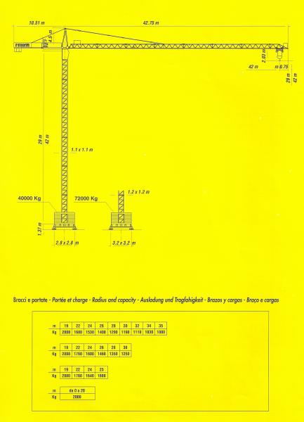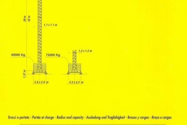 10.5.42 CTY , jib 42 mt, height 30 mt, capacity at jib end kg 800 and max capacity kg 2000. Remote control included, inox eletrical box. Galvanization tower and jib.