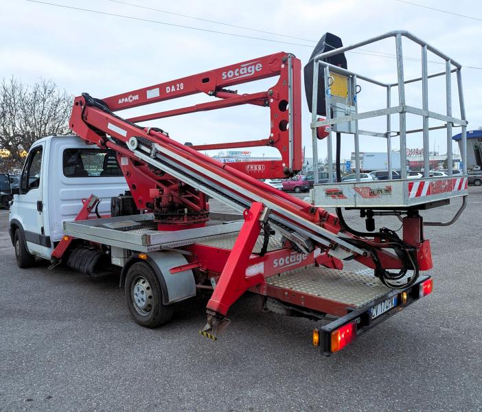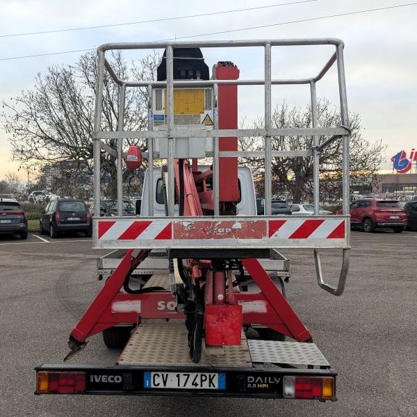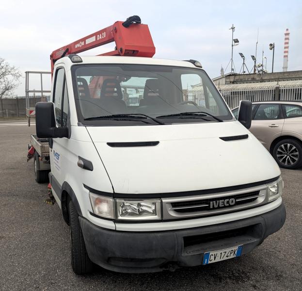 CARATTERISTICHE TECNICHE: H Max di lavoro m 19,70; H piano di calpestio m 18,00; Sbraccio Max di lavoro m 9,50; Rotazione Torretta 700°; Portata Max Cestello kg 200; Dimensioni cestello mm 1400x700x1000, Comandi Idraulici, Presa Elettrica 230 V nel Cesto, Rotazione Cestello 45° + 45°, sistema anticollisione cabina-cesto, piano di calpestio allungato, il tutto Montato su Iveco Daily , il tutto anno 2005 , km 58000 , ore lavorative 7700, revisionato e collaudato MCTC e CE , collaudo ventennale effettuato