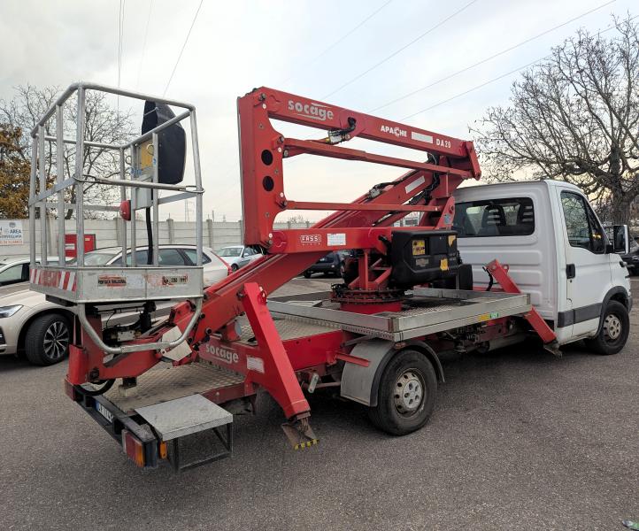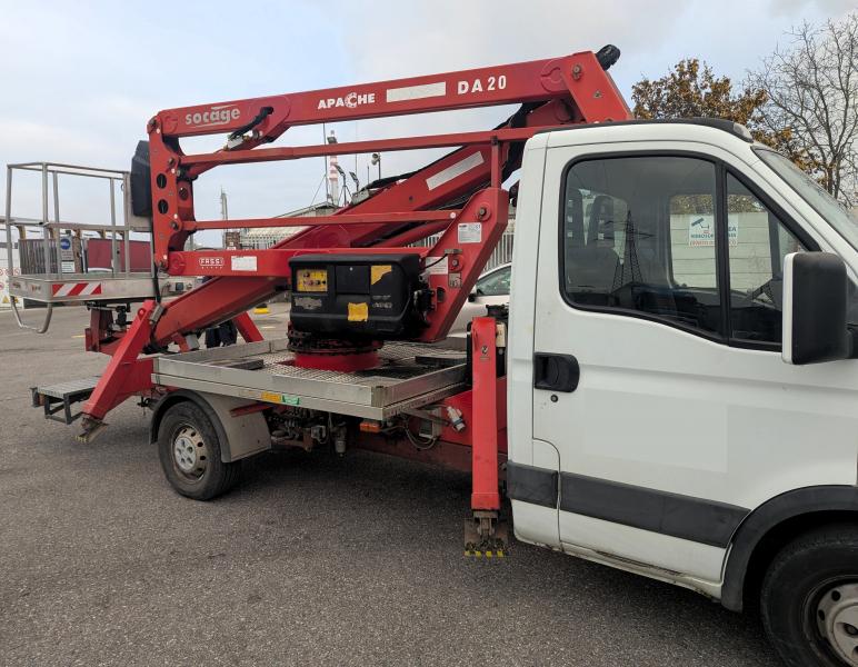Piattaforma aerea usata Socage, con doppia articolazione e braccio telescopico a uno sfilo. Cestello portapersone in alluminio, applicato all'estremità del braccio telescopico, con sistema di livellamento automatico completamente idraulico, tubazioni interne. Installabile su autocarro da t 3,5 di peso complessivo,passo 3400 mm, con n.4 stabilizzatori idraulici a discesa diretta.