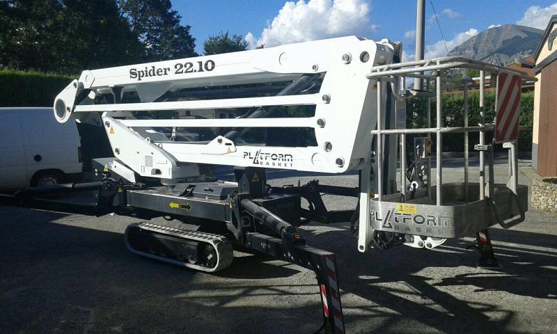 Le piattaforme a ragno Platform Basket Spider 22.10 sono piattaforme cingolate che permettono di lavorare fino a 22 m da terra, il loro funzionamento avviene mediante motore diesel Kubota, dispongono inoltre di elettropompa 220V per lavorare in modalità elettrica all'interno di locali chiusi;
