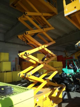 Scissor elettrico Haulotte Compact 8 anno 2008 con 401 ore. Altezza max di lavoro 8 mt, cesta estensibile fino a 3.22 mt. Portata massima di 300 kg, peso macchina di 19 q.li. Fornito con 4 batterie nuove, ruote anti-traccia e dispositivo anti-ribaltamento